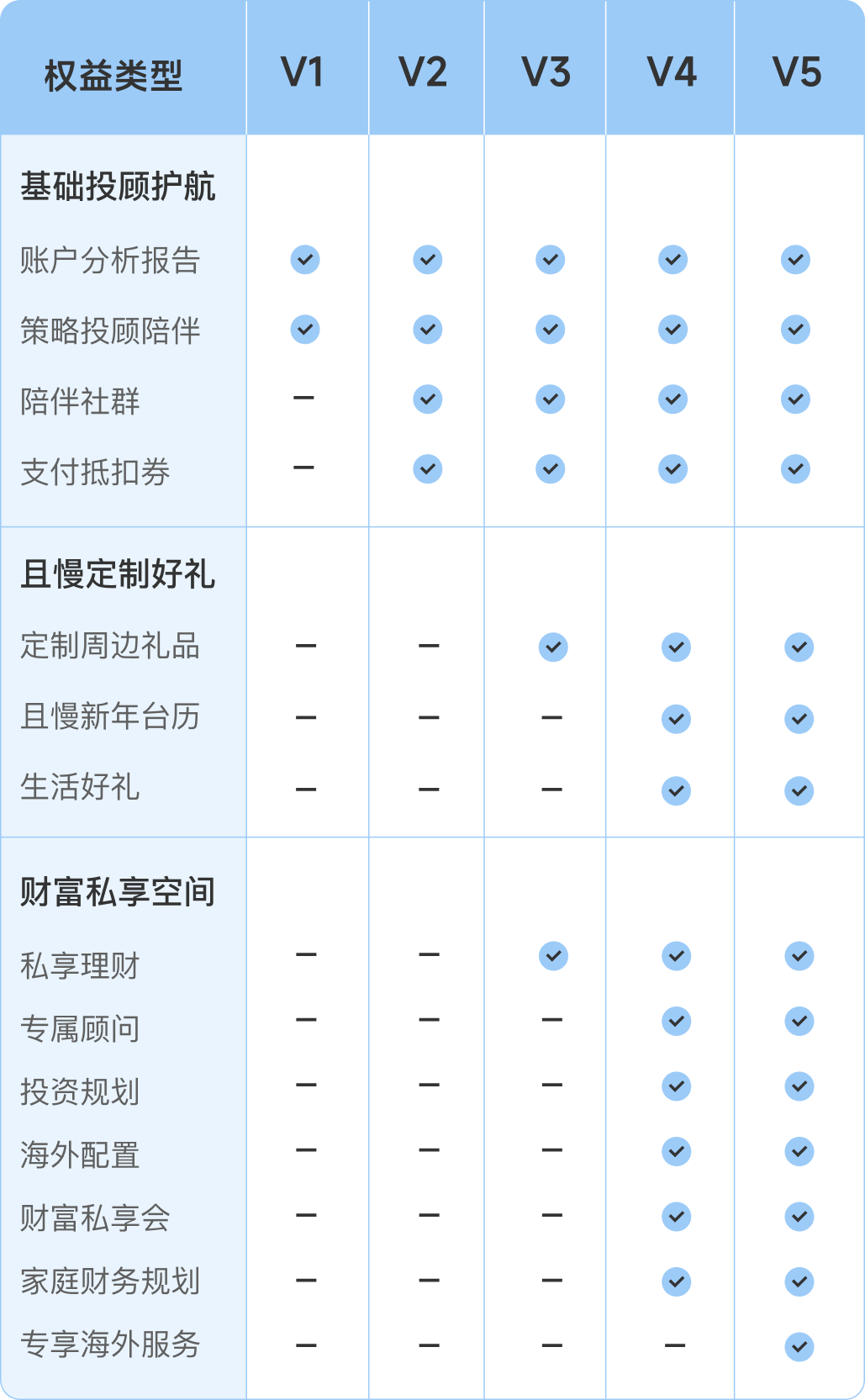 延续老的传统,本次除了这几只策略的投顾费变更外,我们还为大家准备全新的权益体系: