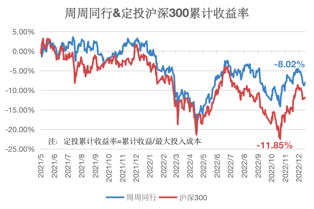 周周同行精选业绩优秀的偏股基金,每周定投,逐步将日常闲散资金积累成金额可观的一揽子优质股权资产,追求超越沪深300甚至偏股基金指数的收益。