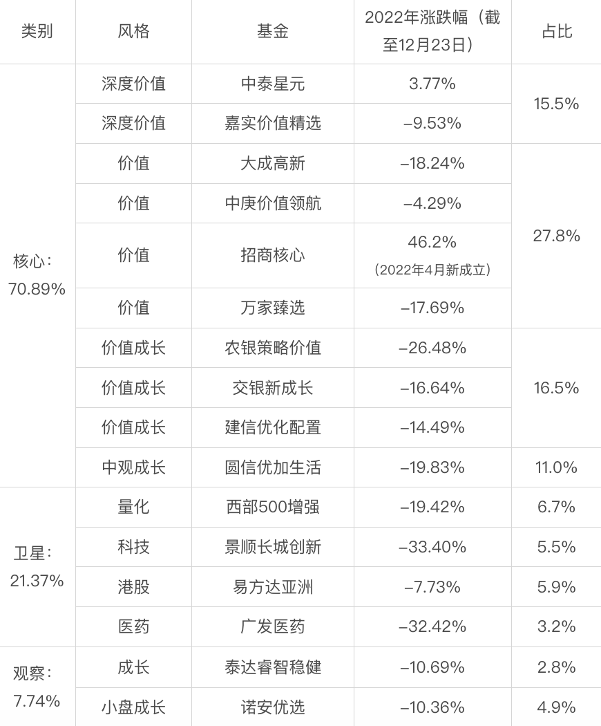 卫星仓则追求弹性,主要考虑一些行业型、策略型、潜力型基金经理。