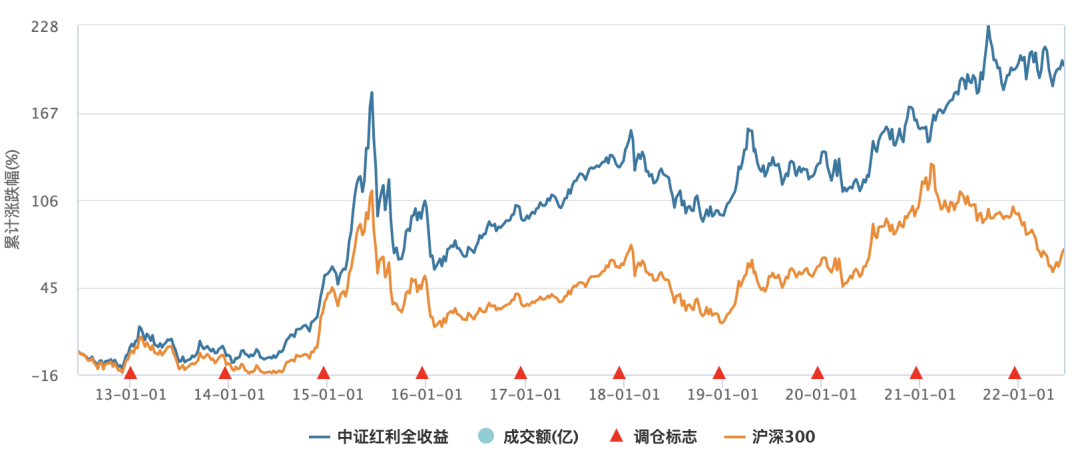 以中证红利全收益指数为例,过去10年获得2倍收益,年化收益11.6%,跑赢了沪深300。
