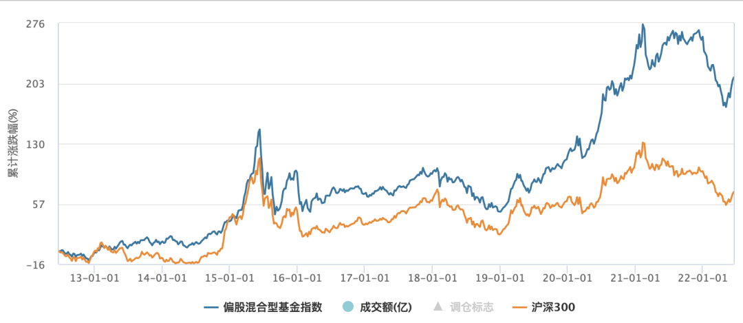 以Wind偏股混合基金指数(885001)来看,最近10年累计收益率210%,对应年化12%,而同时期沪深300年化收益约5.5%。