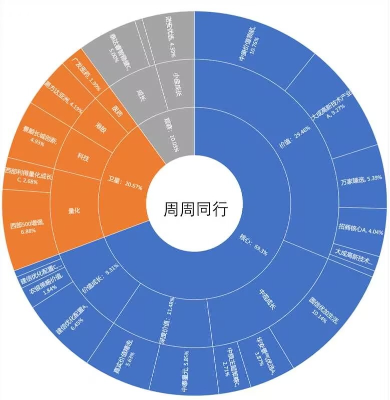周周同行采取“核心+卫星”模式,核心仓主配全市场选股、注重估值性价比、业绩曲线稳健的基金经理;