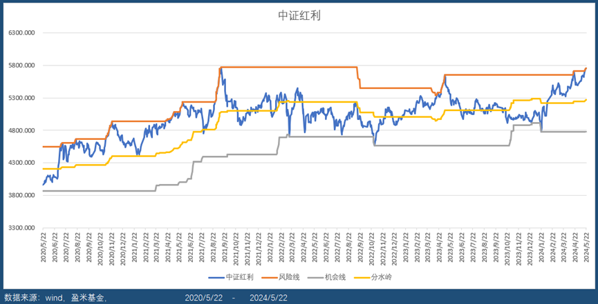 其次,从趋势角度来看,目前中证红利指数处于风险线附近。参考历史数据,当价格在风险线附近,出现调整的可能性更高。在机会线附近的时候,出现反弹的可能性更高。也就是说,中短期来看,当前红利指数出现调整的可能性或许更大。