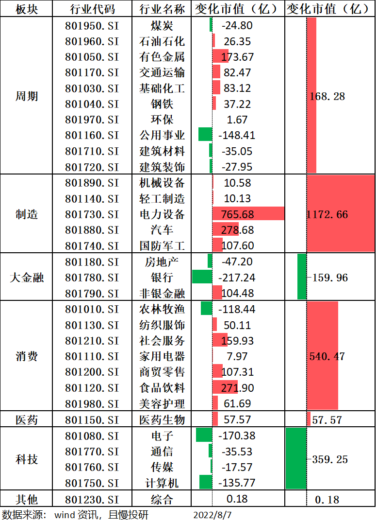 周末,我做了几组数据。通过对所有股票二季度,机构持仓市值变化情况进行统计。发现制造赛道,二季度一致受到了机构的青睐。