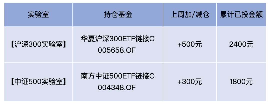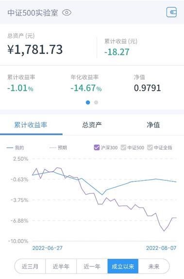 【中证500实验室】上周一(8.1)定投 300元,累计收益率-1.01%。