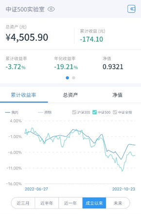 【中证500实验室】上周一(10.17)定投 300元,累计收益率-3.72%。