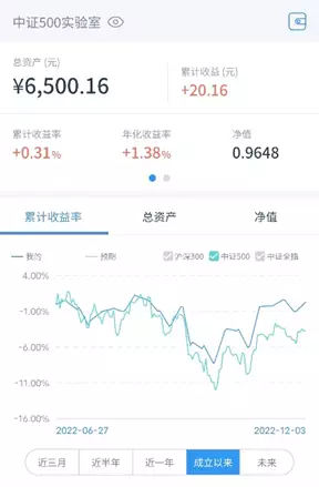 【中证500实验室】上周一(11.28)定投 300元,累计收益率0.31%。