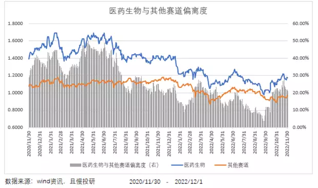 5、 医药生物处于强势阶段。趋势有所减弱。2022年10月以来,医药生物相较于其他赛道,一直处于向上偏离的态势,处于强势阶段,但11月中下旬后,趋势有所走势。