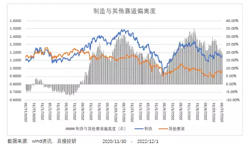 2、 制造赛道处于弱势阶段。我们可以看到制造赛道相较于其他赛道,自2022年6月以来处于向下回归的态势,当前趋势还在延续。