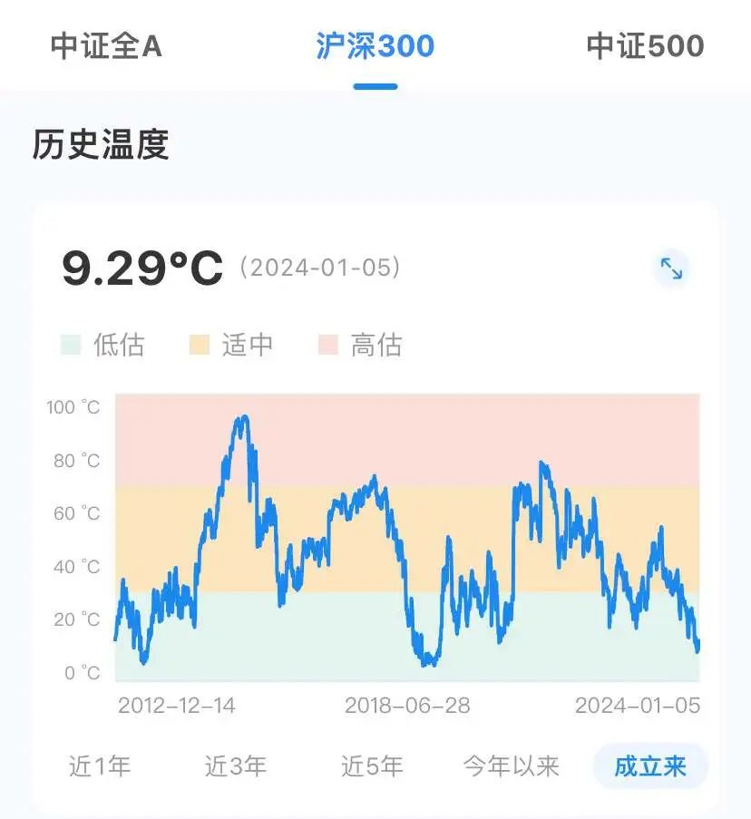 算法说明:采用自2012.12.14至今的市盈率、市净率、风险溢价三个指标,并赋予这三个指标对应权重,加权计算得出温度值。